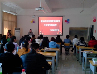3月14日,外国语言学系在B304举办弘扬雷锋精神中文朗读比赛,外国语言学系党支部副书记赵元雪,外语系老师朱丹丹、马忠诚以及各院系主席担任比赛评委。