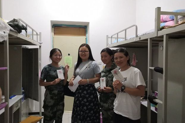 9月5日晚8点,我系英语专业教师几位老师来到学生宿舍,为2019级新生送去关怀和问候。在宿舍,英语专业教研室主任李雪峰副教授详细了解了同学们的学习生活情况,问她们有没有想家,是不是经常向父母报平安,并将新生贺卡送到她们手中。希望她们在4年的美好时光中肩并肩、手拉手,共同学习,共同生活,共同用青春书写未来。最后,她鼓励同学们要以“钉子”精神挤时间刻苦学习文化知识,不断提高自身,以甘当“螺丝钉”的精神,干一行、爱一行、钻一行,未来在平凡的岗位上做出不平凡的事迹,通过知识改变命运,不辜负家人的期望和社会的关爱。