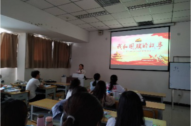 活动利用每次专业综合英语课前展示的时间,让同学们用英语讲述自己与国旗之间的“亲密接触”和感动时刻。同学们积极响应,踊跃参与,有的分组展示,有的个人展示,喜悦与激动难以言表。大三的单敏同学分享了做升旗手的经历和自己对国歌的理解;大二的李丹萍同学表达道每当看到五星红旗冉冉升起,内心激动无以言表。同学们用最纯真的话语表达对国旗的热爱,用祝福和笑容表达对祖国母亲的庄严承诺。大家纷纷表示中华民族的伟大复兴,我们比历史上任何时期都更接近、更有信心和能力实现。