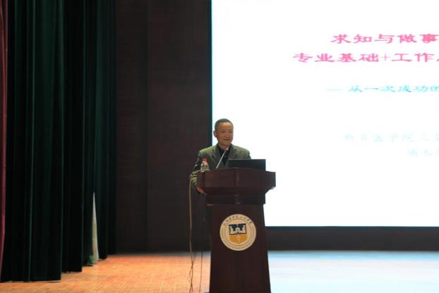端木庆一长期从事英语教学和翻译相关工作,他从一次成功的英语翻译经历引出本次报告会的主题“求知与做事的辩证——专业基础+工作态度+方法措施”。端木庆一结合他为河南濮阳市成功申办“国际花园城市/宜居社区”担任英文资料翻译和申辩人的经历,以及教学过程中所遇学生的学习问题,用自己学生成才的实例说明:在智商方面,每个人虽然参差不齐但却差异无多,事业能否成功在更大程度上取决于个人的意志力和自律能力;求知方面,要有独立学习、正确判断自己的能力,扬长避短,不懈努力。最后,他告诫同学们,专业基础是根本,是一个人的谋生手段,专业基础一定要扎实;态度是决定事业成败的关键因素,做事态度一定要认真、坚定;方法措施得当是事业成功的保障。无论学习、工作,在事前要做足功课,凡事预则立,不预则废;事中全力以赴,做好每一个细节;事后储备经验,扬长避短,就能做好每一件事。