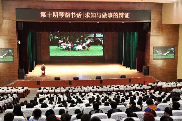 10月17日晚,由我校图书馆、外语系、科研部主办,图书馆学生管理委员会承办的第十期《琴湖书话》读书报告会在闻德礼堂成功举办。图书馆特邀我系主任端木庆一教授主讲,图书馆馆长华玉民与图书馆各部门老师出席,近千名学生参与聆听此次报告会。