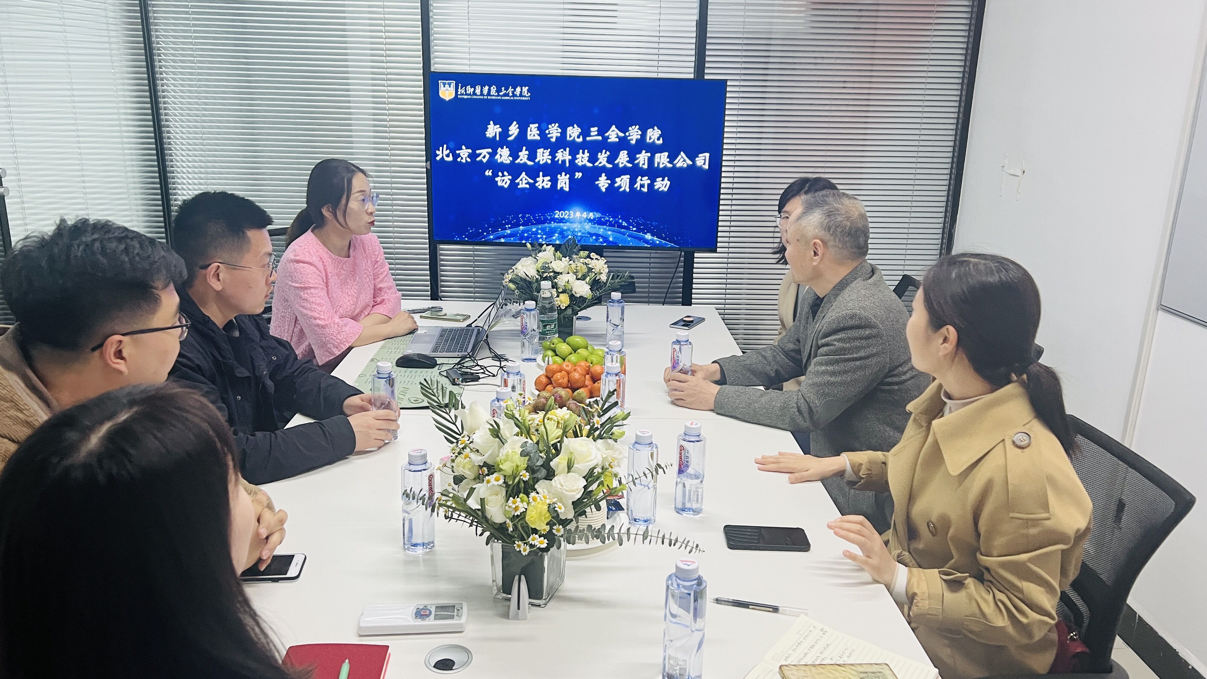 44日,为响应教育部访企拓岗促就业的政策要求,切实推进我院毕业生的充分就业和实习生工作的顺利开展,我院院长端木庆一、院党总支副书记赵元雪、英语专业教研室李晓丽、学务部及书院相关老师赴北京万德友联科技有限公司(郑州分公司)开展“访企拓岗”专项行动。