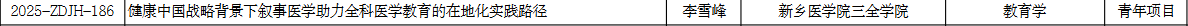 2025年度河南省高校人文社会科学一般项目立项结果。我院李雪峰老师申报的项目“健康中国战略背景下叙事医学助力全科医学教育的在地化实践路径”获批立项。