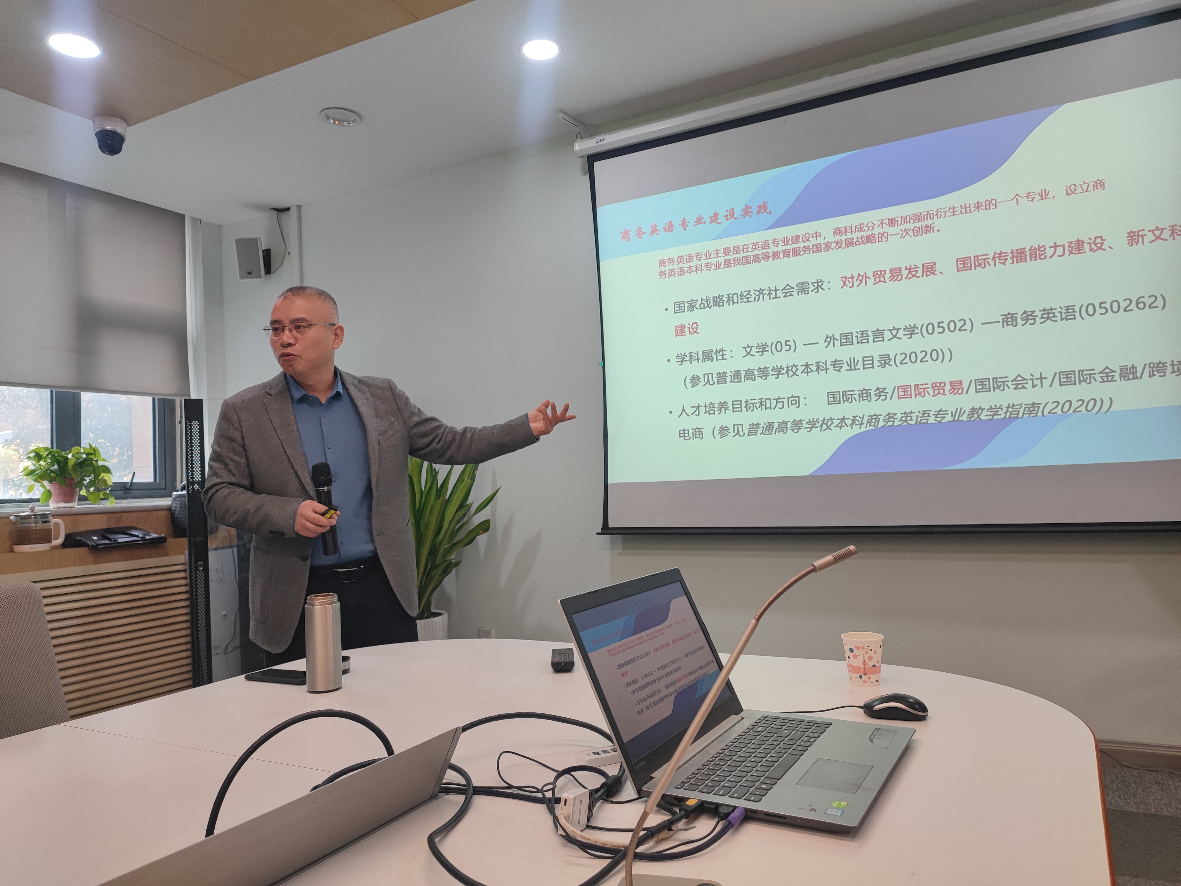 面对专业同质化、师资力量不足、理论与实践脱节等挑战,王旭东副院长强调,在新文科建设背景下,商务英语专业的存续与发展必须坚定不移地走“产教融合、校企合作”之路。他结合国家推动服务消费高质量发展与“四新”建设的战略方向,阐述了商务英语作为交叉学科,培养复合型、应用型人才的紧迫性与重要性。