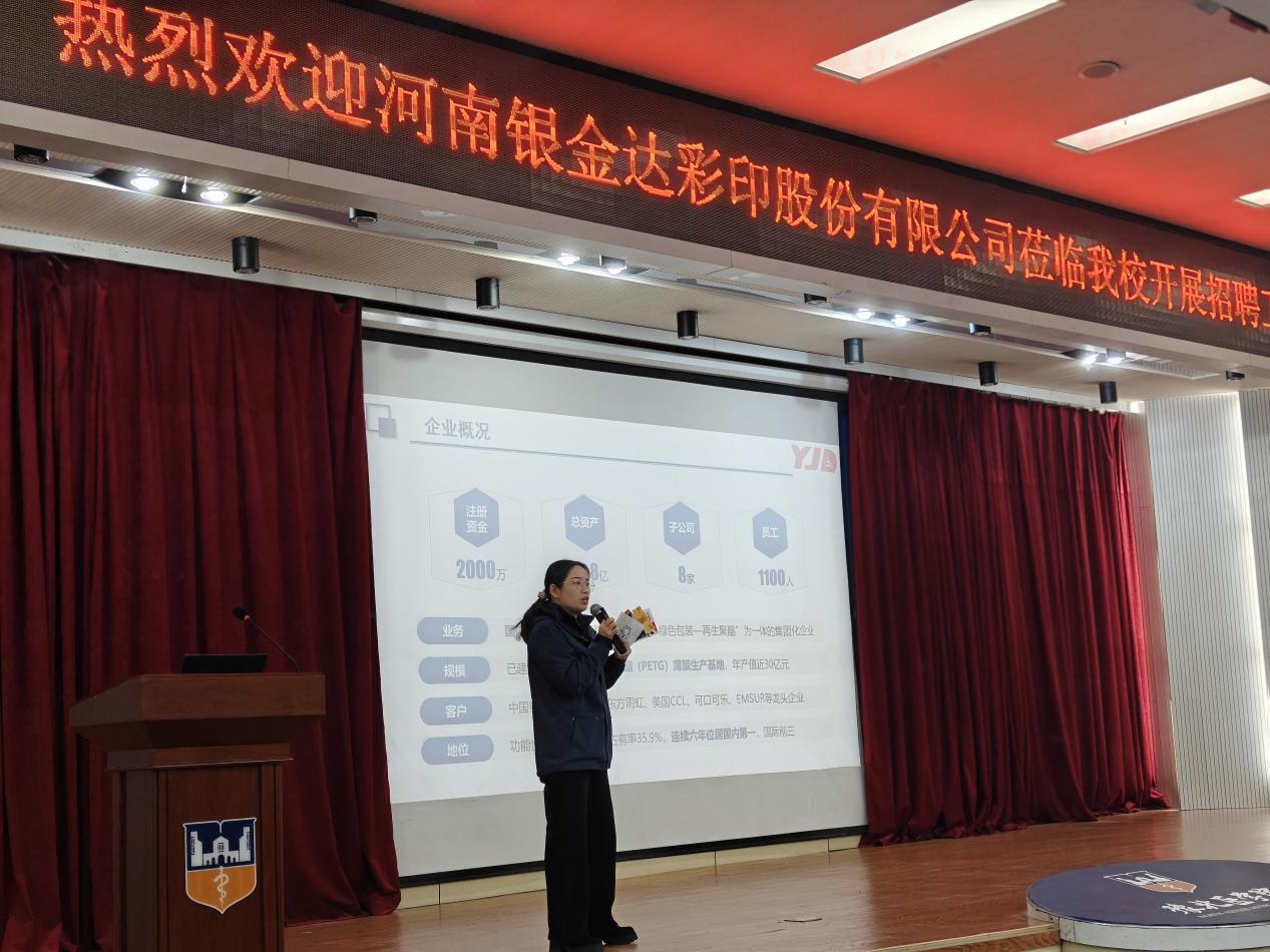 12月26日,河南银金达彩印股份有限公司专场招聘会在我校新乡校区报告厅举行。本次专场招聘主要面向我院大四学生,旨在为应届生搭建就业对接平台,为企业纳才、深化校企合作筑牢基础。